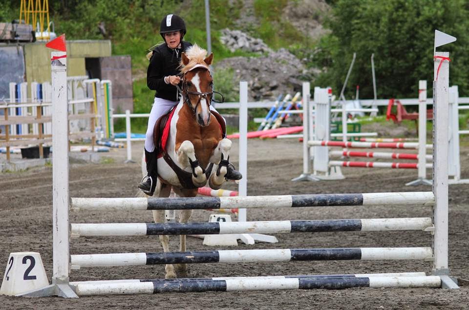 "Det er lillesøstera mi sin hest, men jeg rir den. For hun er bare fire år, forteller Thea, og legger til at søstera Marie i sin tid fikk Pluto i bytte mot smokken. Nå er Thea spent på om Pluto vil bukke og tøyse når han om litt skal ut på banen. Mens mamma Camilla demonstrerte dressur ute på banen, er Thea Gulliksen (8) i full sving med å klargjøre vallaken Pluto inne i stallen. Thea har drevet med hest siden hun var tre år gammel, men har aldri tidligere vært i en ponnigalopp sammen med Pluto.